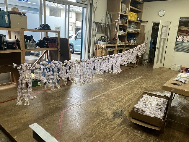 桜装飾仕込み中